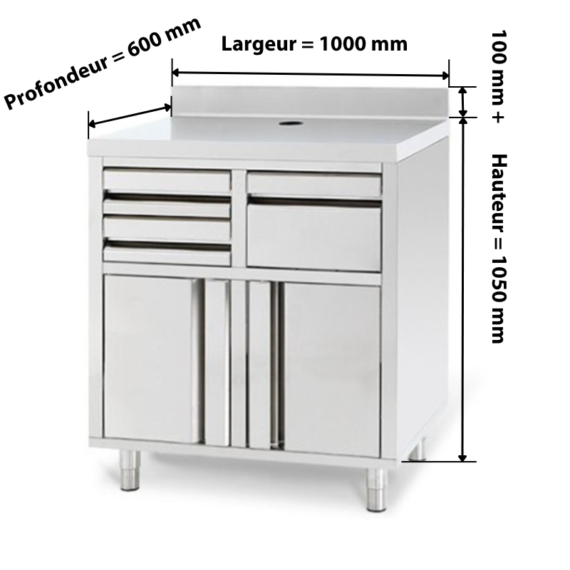"Le meuble à café Goldinox est conçu pour répondre aux exigences des professionnels. Avec ses dimensions de 1000mm, il offre un espace suffisant pour organiser votre matériel de café tout en optimisant l’espace disponible."