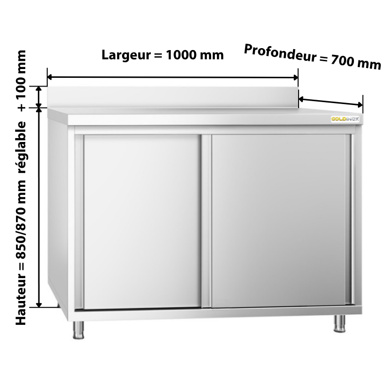 Meuble bas inox 1000x700 mm adossé PREMIUM - GOLDINOX