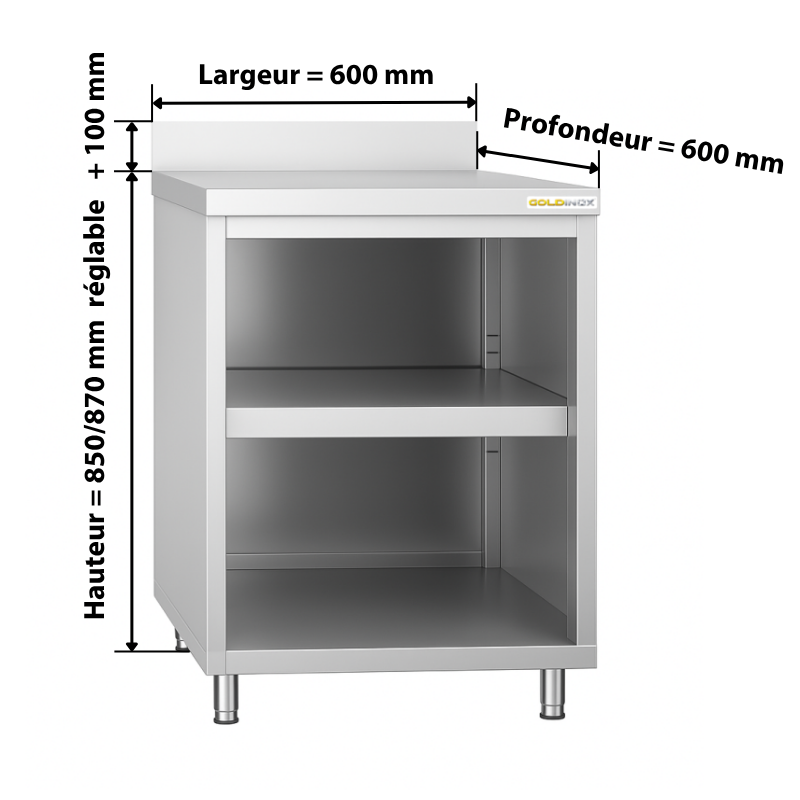 Meuble bas inox ouvert 600x600 mm adossée IDEAL - GOLDINOX