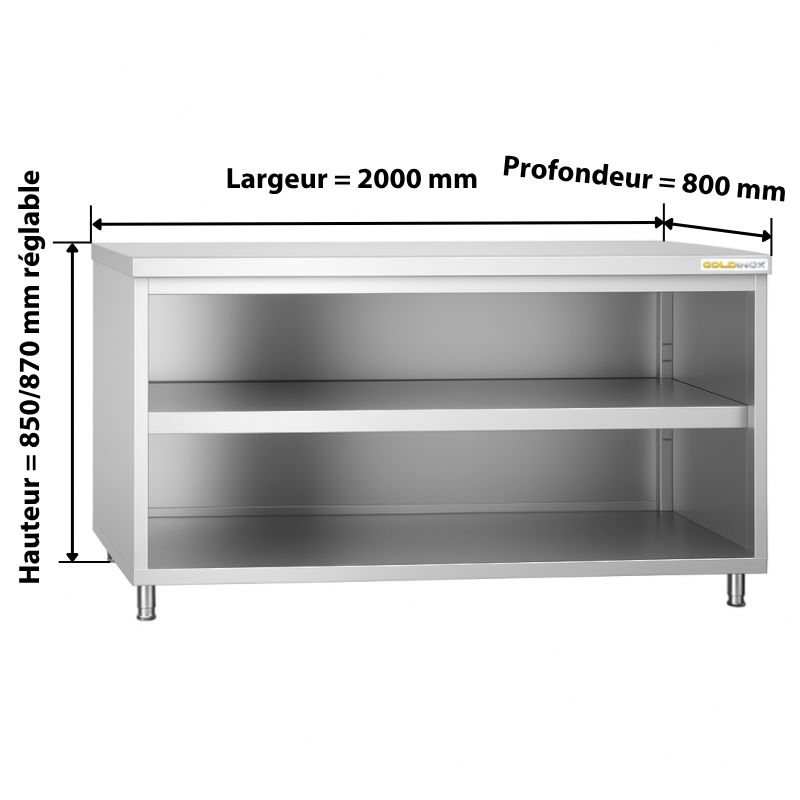 Meuble bas inox ouvert 2000x800 mm PREMIUM - GOLDINOX