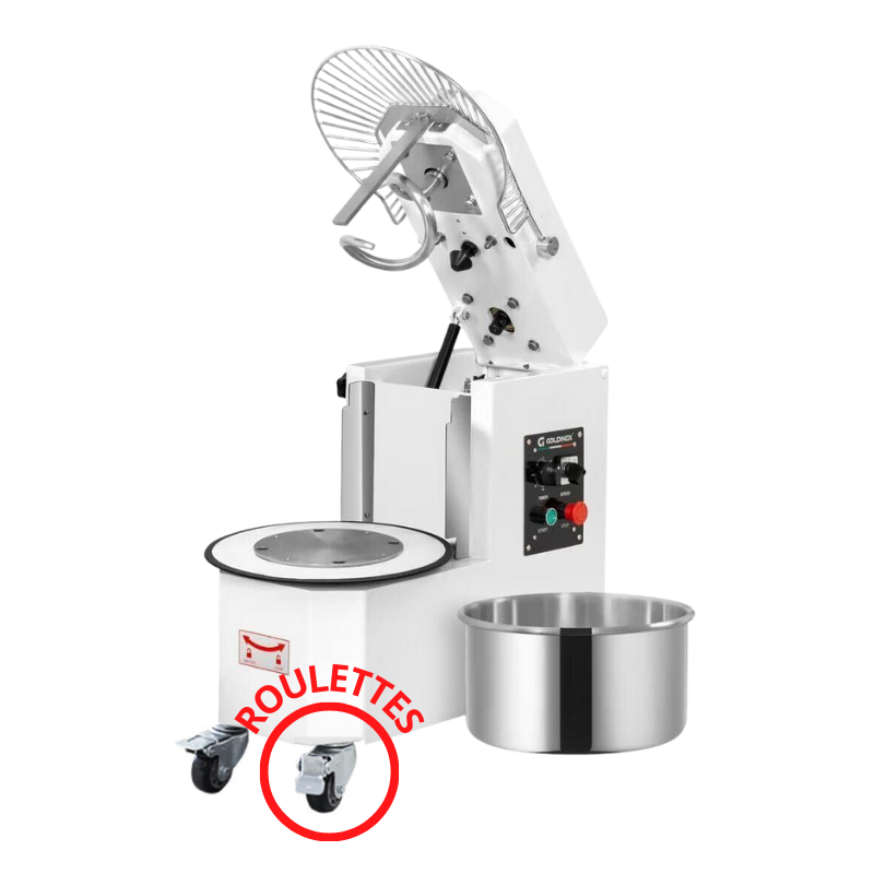 Pétrin à pâte 50 Litres sur roulettes 2 vitesses avec tête relevable et cuve extractible PREMIUM - GOLDINOX
