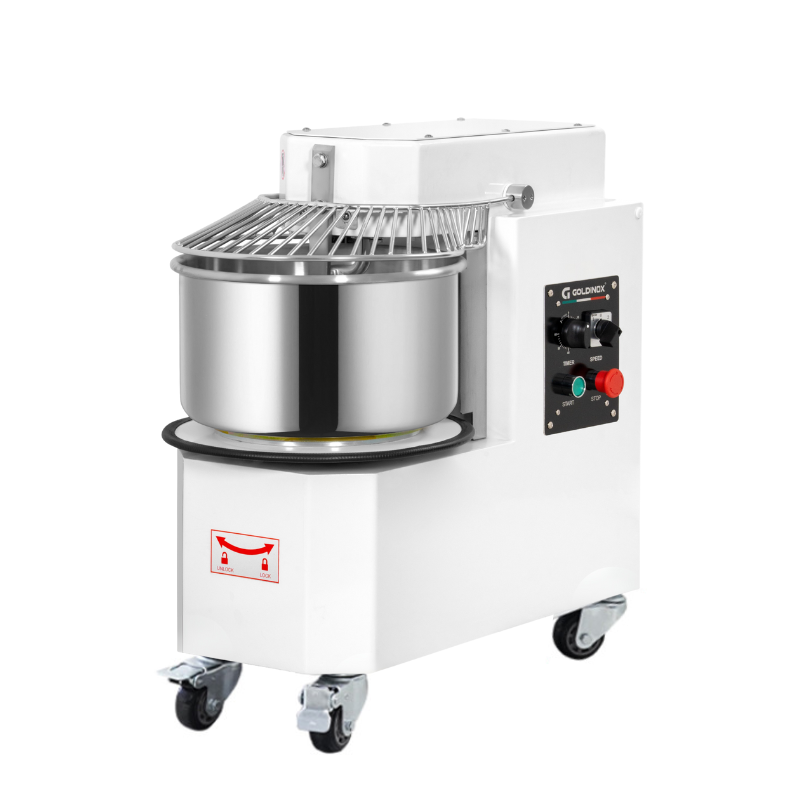 Le pétrin à spirale professionnel GOLDINOX – Modèle PREMIUM est l’allié indispensable des pizzaiolos et artisans exigeants, conçu pour offrir un pétrissage parfait, rapide et constant des pâtes à pizza. Alliant solidité, performance et élégance, il se distingue par sa structure robuste en acier inoxydable, gage de longévité et de résistance, associée à une finition laquée blanche qui apporte une touche moderne et professionnelle à tout espace de travail.