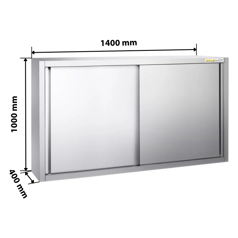 Placard mural inox 1400x400 mm - Hauteur 1000 mm avec portes coulissantes PREMIUM - GOLDINOX