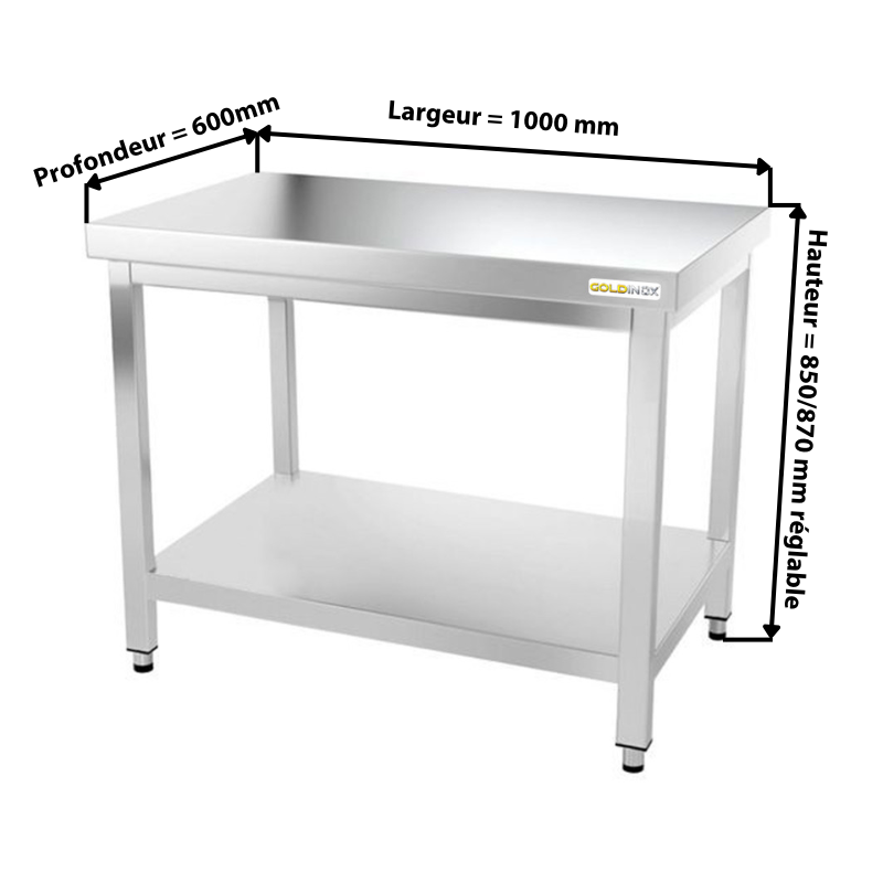 Table de travail en inox professionnelle – Modèle PREMIUM par GOLDINOX